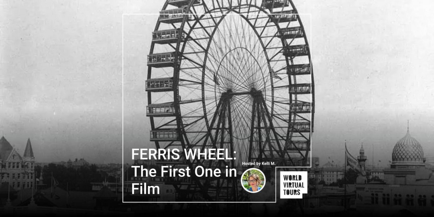 THE FIRST FERRIS WHEEL was a groundbreaking engineering marvel DESIGNED FOR THE 1893 CHICAGO WORLD’S FAIR (aka. World’s Columbian Exposition). Standing as the Fair’s tallest attraction, this iconic structure provided breathtaking panoramic views of the fairgrounds and the city. It also set a precedent for future amusement park attractions. HAVE YOU EVER THOUGHT ABOUT WHAT IT MIGHT HAVE BEEN LIKE TO RIDE THE ORIGINAL FERRIS WHEEL? The views? The duration? The passengers? Let’s try to answer these questions through the magic of movies and virtual reality. Ready to ride? Join Kelli on this unique virtual walking tour as we EXPLORE THE WORLD’S FIRST FERRIS WHEEL IN FILM.