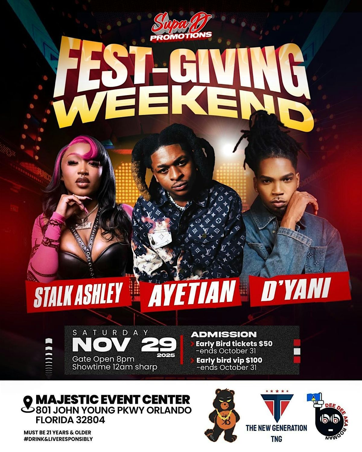 FEST-GIVING WEEKEND!!! LIVE PROFORMA BY STALK ASHLE, AYETIAN, D’YANI. FOR THE FIRST TIME IN ORLANDO FL. NOVEMBER 29TH .