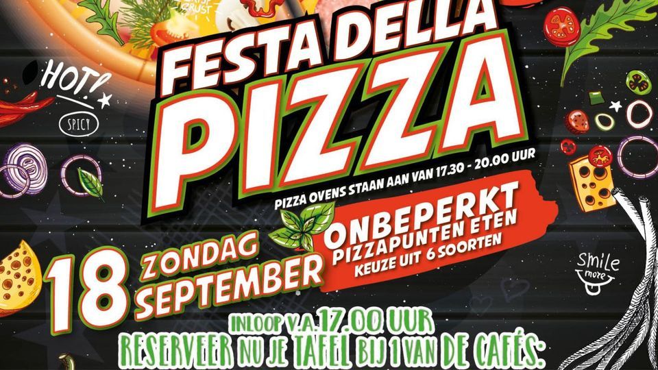 Ook zo'n heimwee aan de vakantie? Wij gaan nog een avond dat heerlijke mediterraanse gevoel terug halen met Feste della Pizza! Humphrey's Café, Café Confetti en Pianobar Toffer dopen gezamenlijk om tot een gezellig Italiaans pleintje.Kom genieten van onbeperkt pizza voor €17,50 per persoon. Helemaal in de Italiaanse sfeer komen, neem dan een bijpassend drank arrangement en geniet onbeperkt van bijpassende wijnen, bier (en fris) voor €15!