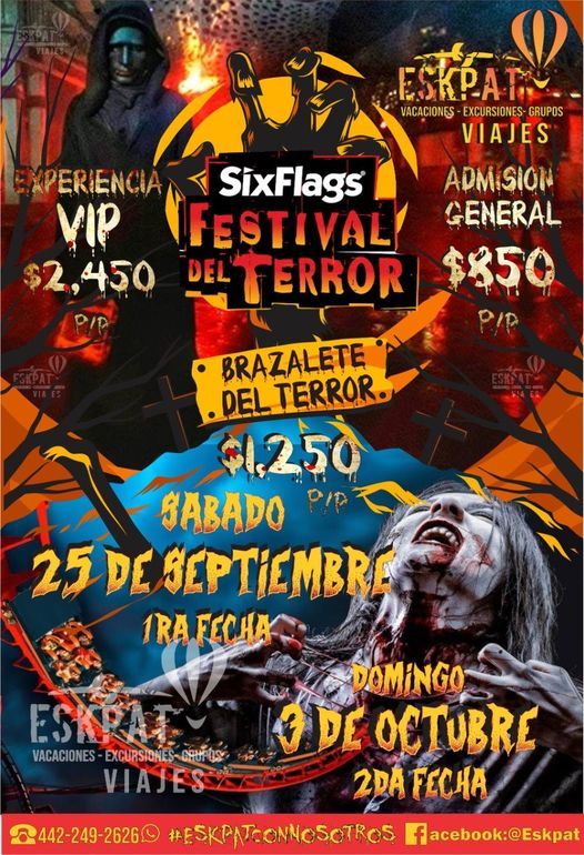 ?Precio $1,250.00 P/P con brazalete del terror.(Juegos+Atracciones del terror+Transporte )