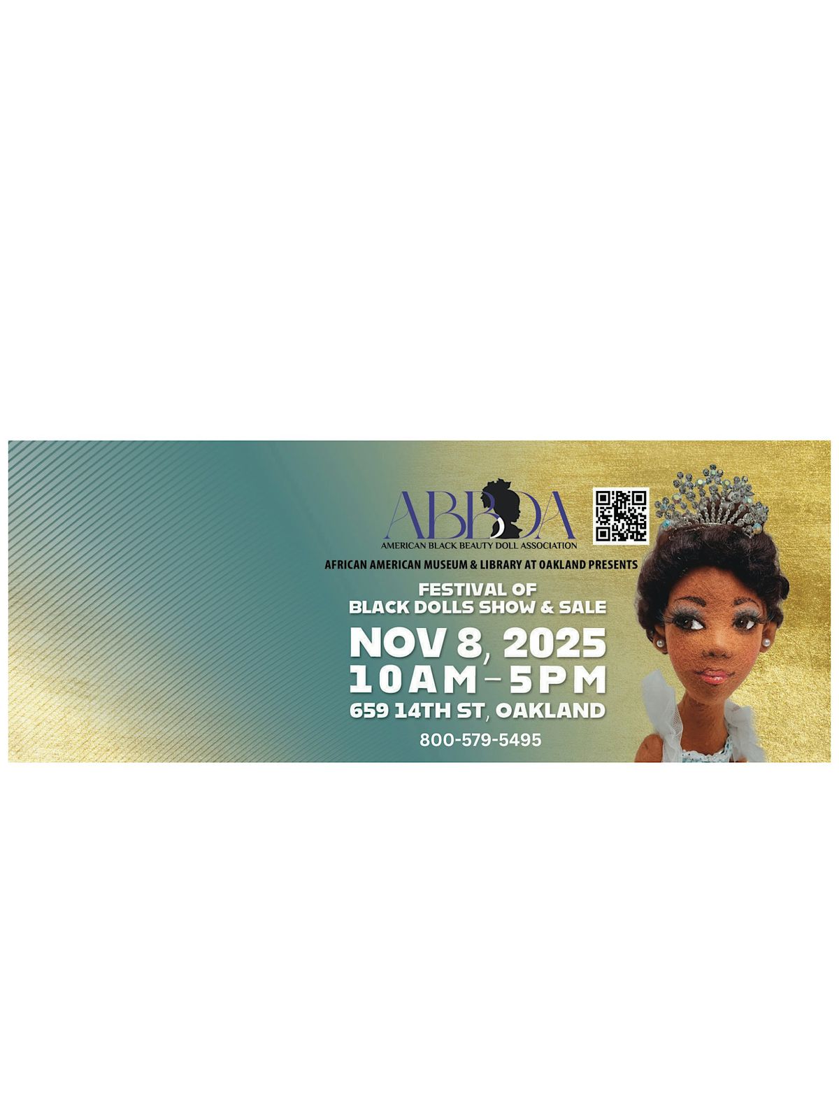 Celebrate culture, creativity, and community at the Annual Festival of Black Dolls Show & Sale at the African American Museum & Library in Oakland! This year’s theme, Rhythms of Africa: Embrace Your Power, honors heritage and artistry with an inspiring lineup. Explore unique creations from talented doll vendors, enjoy hands-on workshops, browse the doll boutique, and be captivated by a special performance from Dimensions Extensions Dance Theater. With delicious food, refreshing drinks, and more, it’s a vibrant celebration for all ages!