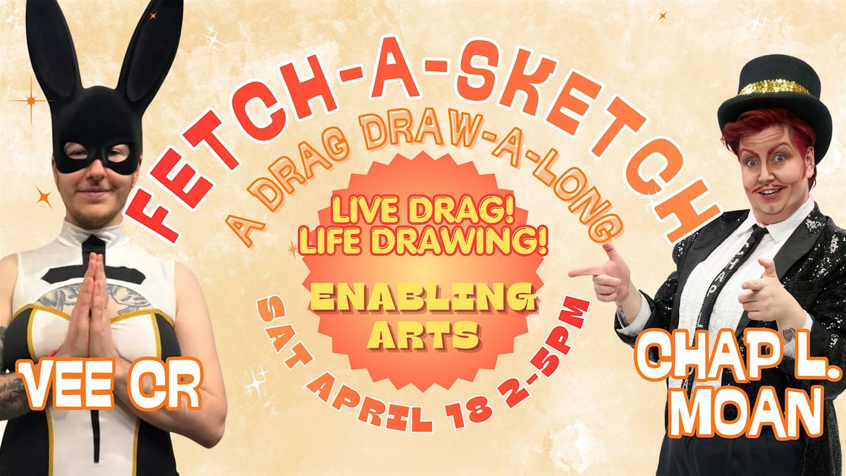 Fetch-A-Sketch is a live drag, life drawing event hosted at Enabling Arts on April 18th from 2-5 pm by Vee CR (@v.chorabik) and Chap L Moan (@chap.l.moan) 💋✨