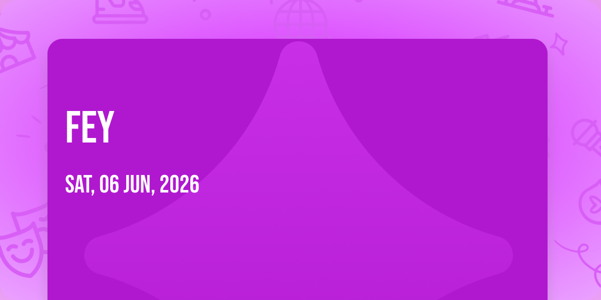 π Location: 33.9821, -117.371π Be part of history at Fey, an extraordinary gathering that will captivate your imagination! ποΈ The prestigious Riverside Municipal Auditorium in Riverside, CA sets the stage for an unforgettable experience on June 6th, 2026 at 02:00 AM. β¨ They are bringing together the finest elements of entertainment and innovation to create moments that will take your breath away. From the moment you arrive, you'll be immersed in an atmosphere of wonder and excitement. π― This carefully planned event ensures every guest experiences something truly special. π Early booking is recommended for this must-attend event of the season!