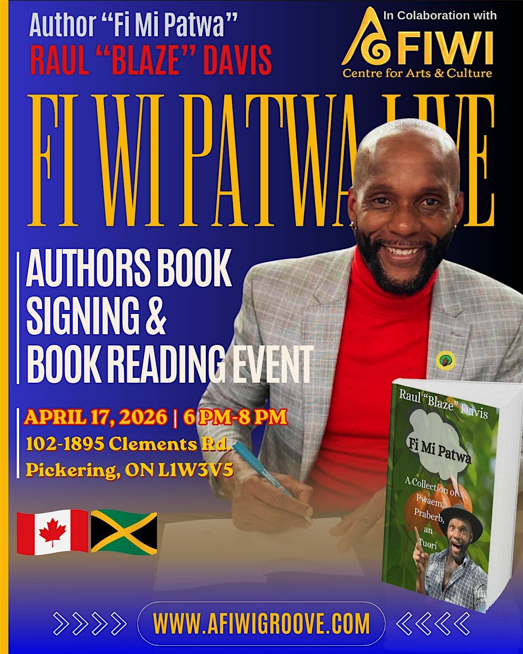 Author Raul "Blaze" Davis invites you to join him for the launch of "Fi Mi Patwa — A Collection of Poems, Proverbs and Stories" — a book born not from a classroom, but from the yard, the verandah, the coal pot fire and the voices of our elders. This is culture preserved in print.
