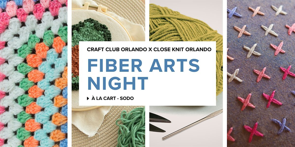 Calling all fiber artists - Craft Club Orlando is teaming up with Close Knit Orlando for a night full of fun and a lot of thread and yarn! Bring your WIPs (work in progress), start a new project, or come to try a new skill!