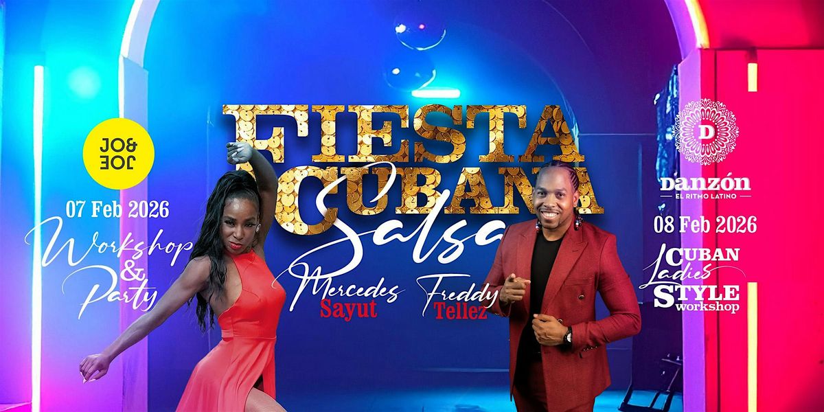 Info: -Afro Timba with Mercedes Sayut 15:00-16:00 : Individual timba is a fundamental part of the dance. It develops musicality,body control,presence,and personal style.Dancing solo builds confidence,precision,and a strong connection to the music.A complete dancer masters their own movement before dancing with others. -Son Cubano Mercedes Sayut 16:00-17:00 : Son Cubano class focusing on rhythm,partner connection and the roots of Cuban dance.Learn the essencial steps,musical structure and elegant movement that form the foundation of salsa and Cuban social dances. -Timba Cubana Mercedes Sayut with Freddy Tellez 17:00-18:00 : Cuban Timba is energy,freedom,and heart.In this workshop you feel the music,let your body go,and dance with Cuban attitude and flavor.Mercedes Sayut and Freddy Téllez will bring you the full Cuban vibe so you can live it and dance it. -Party 21:00-01:30 : Cuban DJ, Live Music, Tombola, Dancers, Cuba in the House!