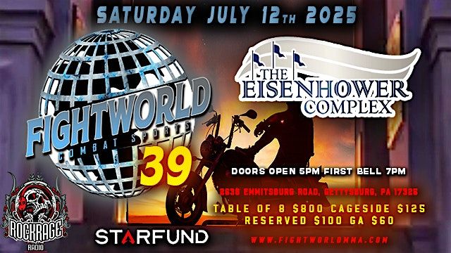 FightWorld returns to historic Gettysburg, Pennsylvania on Saturday, July 12, 2025, at the Eisenhower Hotel & Conference Center for another exciting evening of Professional & Amateur Combat Sports featuring Muay Thai, Kickboxing, & Mixed Martial Arts!