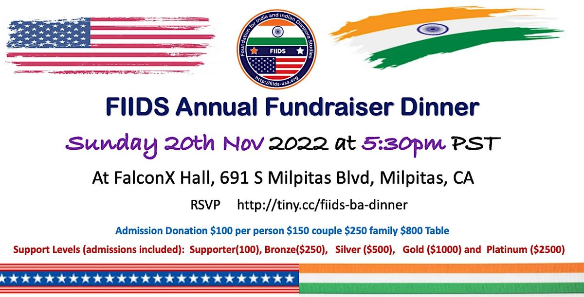FIIDS has been your voice on issues and policy matters in the USA and India. With an eventful and impactful year, we are arranging this dinner event on Sunday 20th Nov at Milpitas . During the event, we would present following 2022 activities and seek support for 2023 plans. We will also be inviting elected officials and dignitaries to the event.