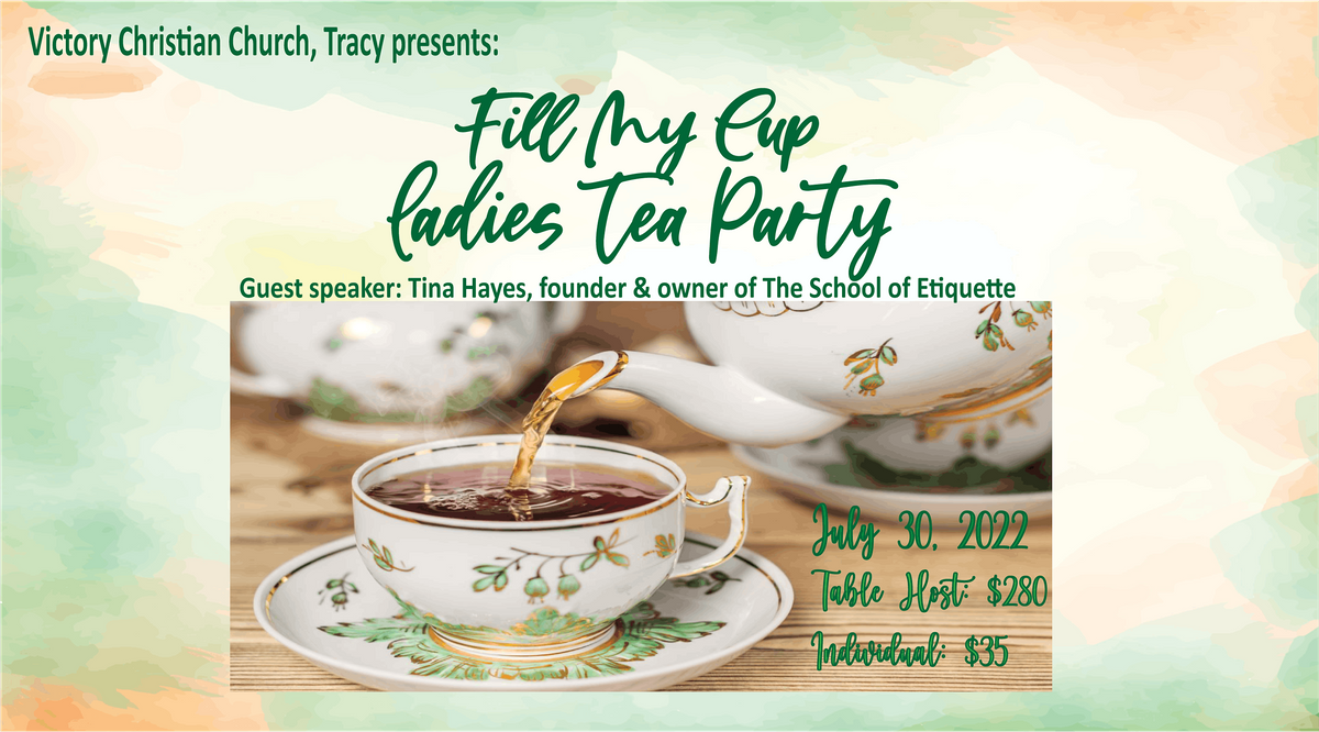 Women of Victory Christian Church Tracy presents: Fill My Cup Tea Party with guest speaker, Tina Hayes.About this Event