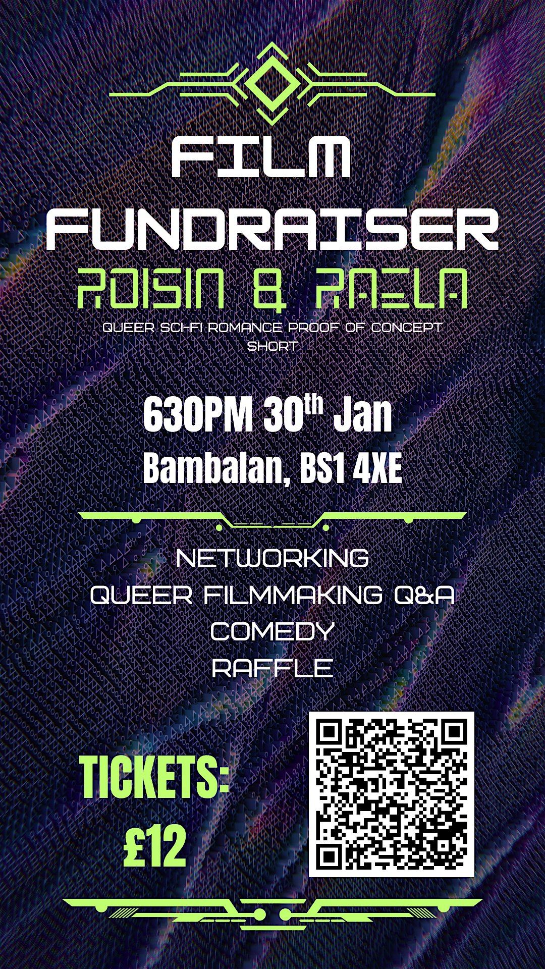 Come network with other talented filmmakers, meet some of our crew, listen to us discuss the currrent state of queer filmmaking, enjoy comedy by the hilarious Charlotte McEvoy, and join the chance to win some fun prizes!