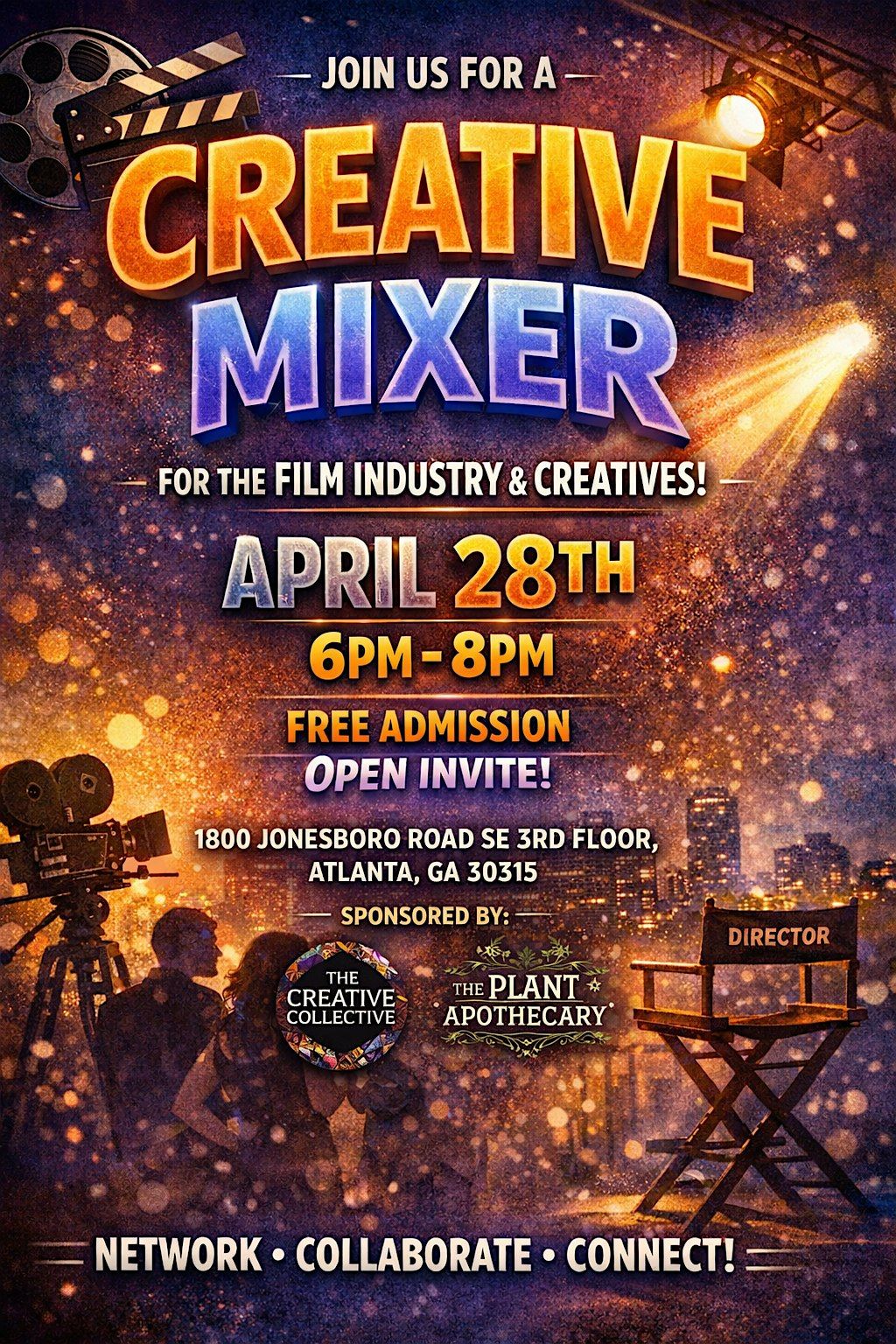 Get ready to network, share ideas, and connect with fellow creatives in person. This is the perfect chance to meet industry pros, collaborate on projects, and spark new inspirations. Whether you’re into film, production, writing, or any creative field, you’ll find your tribe here. Don’t miss out on this fun, laid-back evening of creative vibes and great conversations! Sponsored by The Creative Collective and The Plant Apothecary.