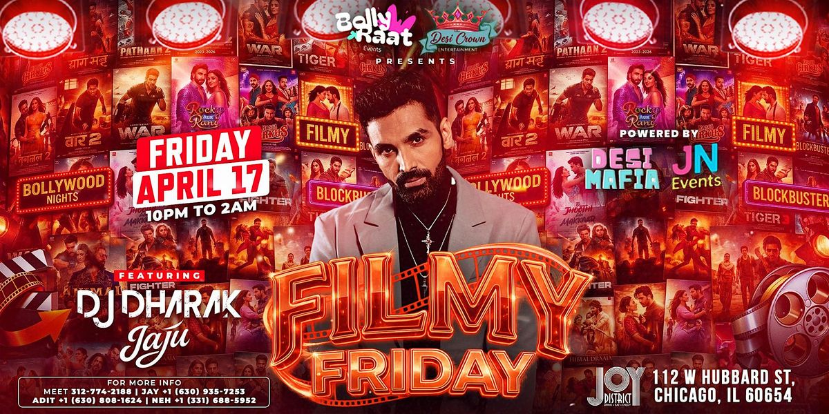 Chicago, get ready for a high energy Bollywood party experience! Join us for Filmy Friday, a night inspired by the biggest Bollywood blockbusters, music, and dance vibes.