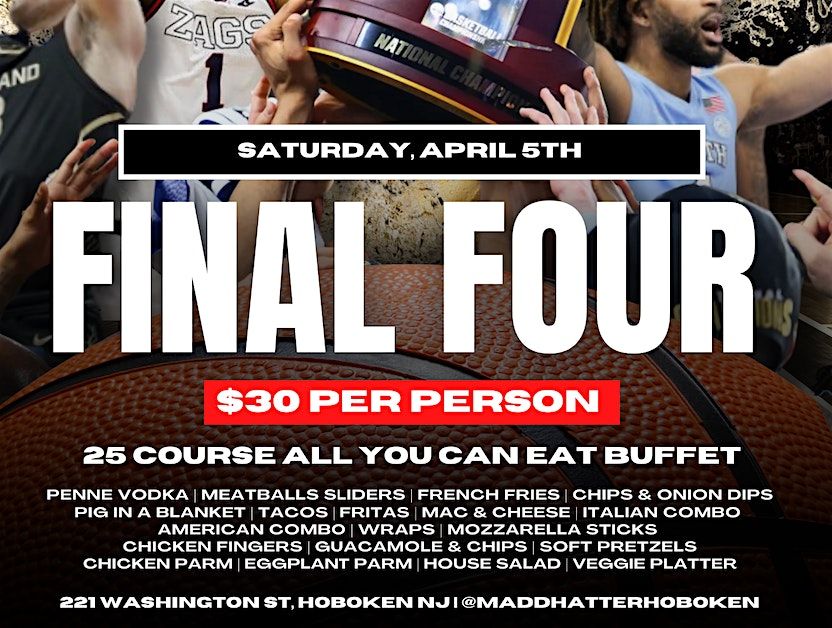 As the tournament heats up, join us at Madd Hatter Hoboken for the ultimate basketball viewing experience, paired with a feast fit for champions. Cheer on your favorite teams while enjoying a wide array of mouthwatering dishes, from savory entrees to delectable desserts. With options to please every palate, our buffet promises to elevate your March Madness experience to new heights.