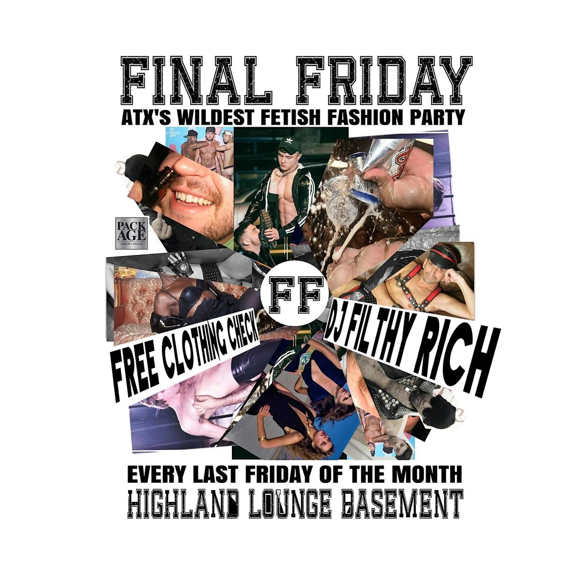 Join Package Austin in the Basement at Highland Lounge for an exciting fetish fashion party full of debauchery! Dress your best in glitter, vinyl, rubber, chains, lace, jockstraps, running shorts, mesh, blood and gore, garbage.... Anything goes!