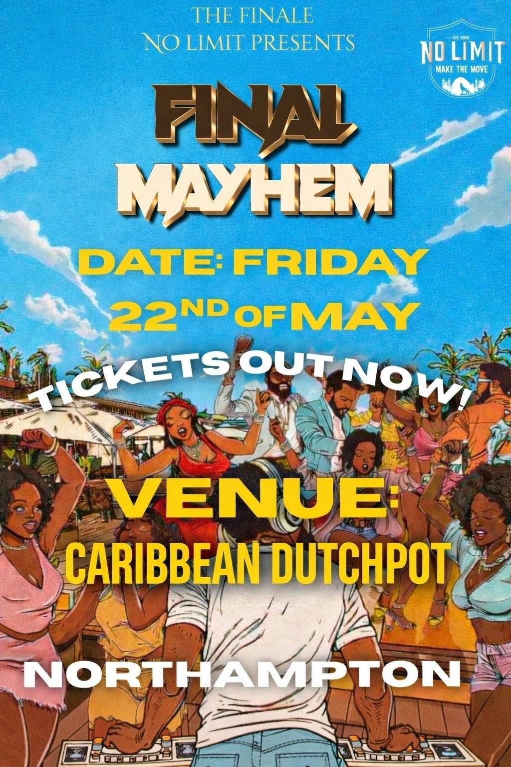 THE MAYHEM CONTINUES… FOR ONE LAST TIME.FINAL MAYHEM.WE ARE RETURNING AGAINNN WITH MAYHEM — NO LIMIT is back with another BANG! If you were at LAST TRAIN BACK, MIDNIGHT MAYHEM, MIDNIGHT MAYHEM RELOADED, GHANA GHANA GHANA, LASTNIGHT MAYHEM, LIMITLESS REIGN, NLB and MIDNIGHT MAYHEM RETURN, then you already know how we do.