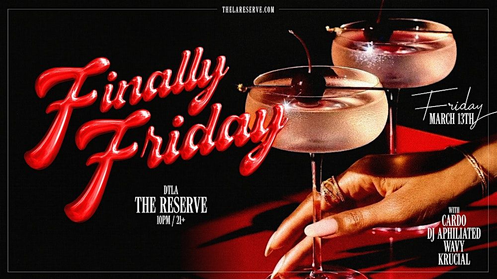 IT'S FINALLY FRIDAY! Get ready to dance the night away at Finally Fridays at The Reserve! Immerse yourself in the hottest top 40s, club hits, and popular tracks — from hip hop, afrobeat, latin, R&B and more in the main room and a mix of latin, reggaeton, dembow, and more in the vault! It's a night filled with fire, passion, and endless dancing. Prices go up at the door, so get your tickets now!