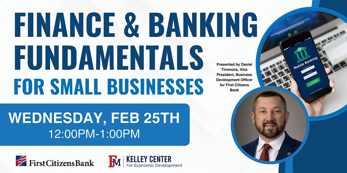 Join Daniel Timmons, Vice President, Business Development Officer for First Citizens Bank for a lunch & learn event on managing finances for a small business. Attendees will learn more about: