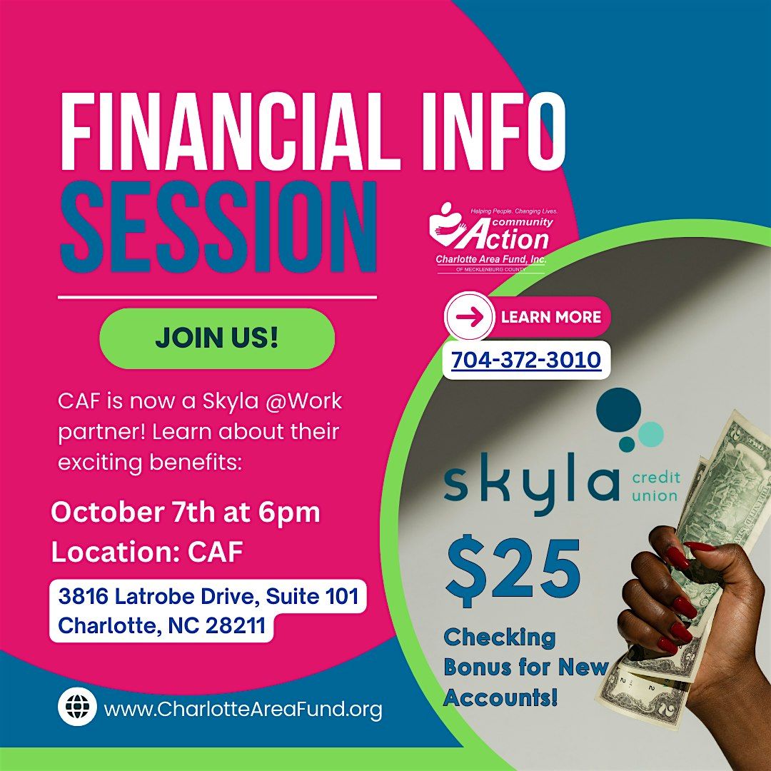 CAF is now a Skyla @Work partner! Learn about their exciting benefits. A $25 Checking Bonus for New Accounts!