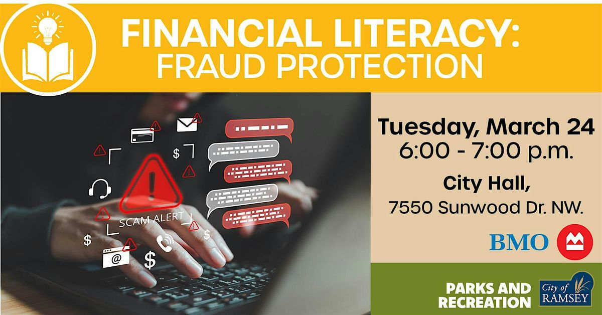 Ramsey Parks and Recreation is hosting a FREE fraud prevention class with BMO Bank of Ramsey. This interactive workshop is focused on fraud prevention and the warning signs of identity theft. Join us to learn best practices for protecting yourself against today’s scammers. This session will cover common types of identity theft and fraud, along with practical strategies to safeguard your personal information and financial data.