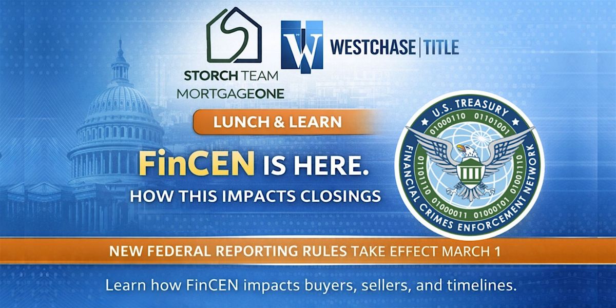 Join the Storch Mortgage Team and Westchase Title for an educational Lunch & Learn designed for Realtors. This session will focus on what’s changing, how it impacts transactions, and how to set expectations early so closings stay on track.