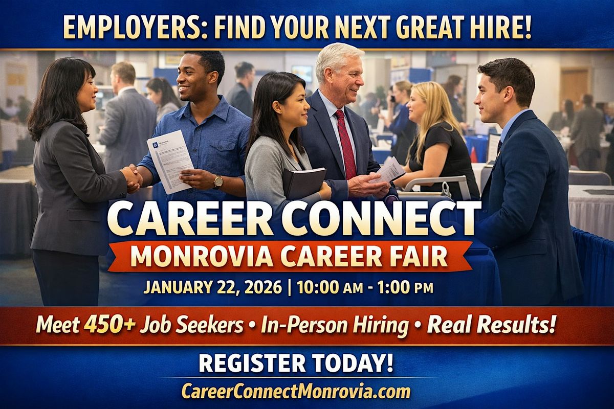 The Career Connect Monrovia Career Fair on January 22, 2026, from 10:00 a.m. to 1:00 p.m., is a high-impact hiring event designed specifically for employers who are actively seeking qualified, motivated, and job-ready talent. With 450+ job seekers expected, this event provides a powerful opportunity to connect face-to-face with candidates who are ready to work.