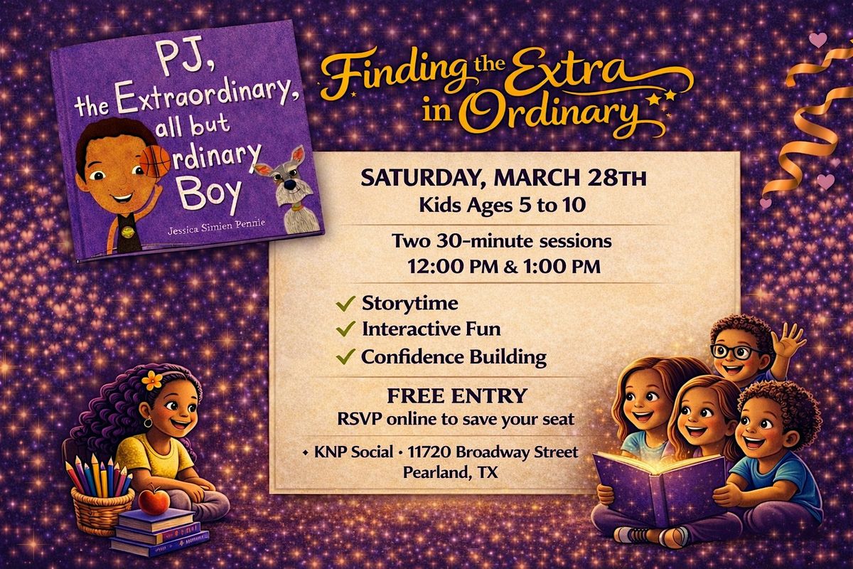 Join us for Finding the Extra in Ordinary, a special experience inspired by the book PJ, The Extraordinary All But Ordinary Boy. This is more than an event. It’s a space where kids feel seen, supported, and celebrated.