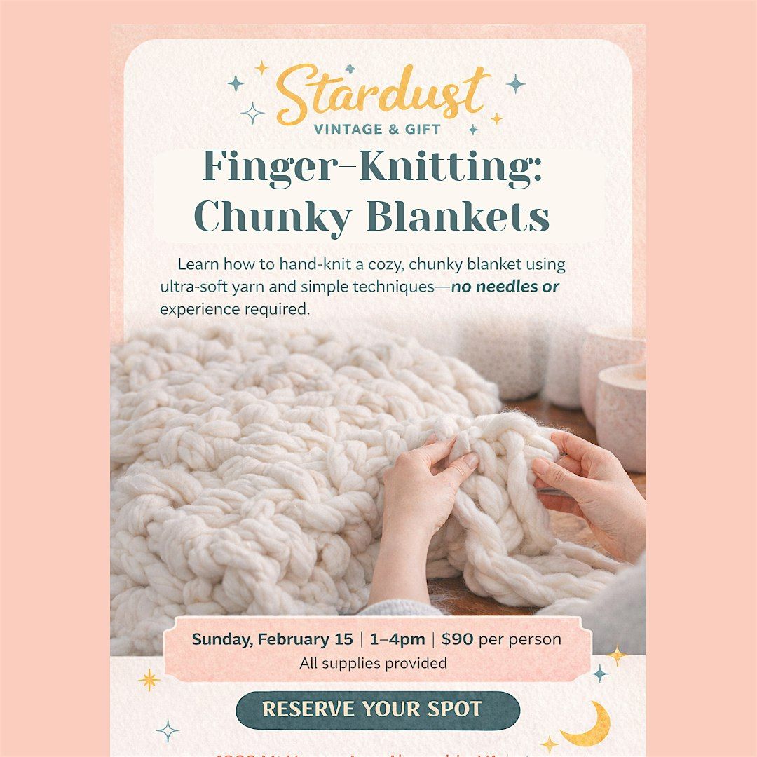 Learn the cozy art of hand-knitting a chunky blanket—no needles required! In this hands-on class, you’ll use soft, oversized yarn to create a beautiful throw from start to finish. Perfect for beginners and anyone who loves a cozy, creative project.