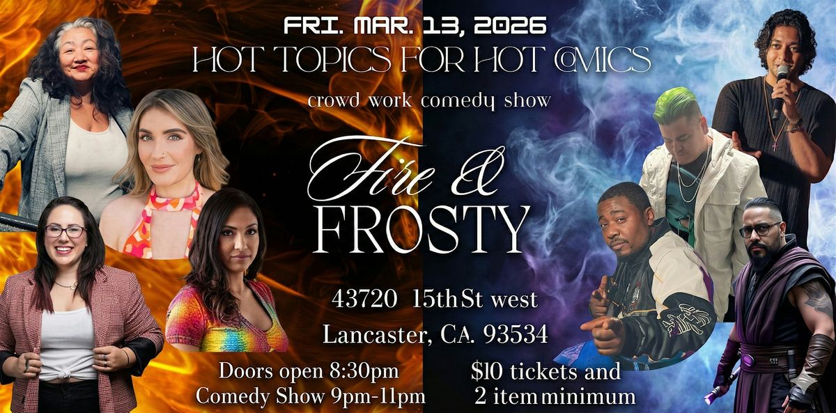 Get ready for a night of laughs and sizzling conversations at Fire & Frosty! Join us in person for a casual hangout where some of the hottest comics dish out their takes on the latest buzz. It's all about good vibes, great comedy, and fresh perspectives. Don't miss this chance to chill with frosty drinks and fiery jokes!