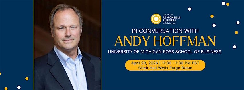 The CRB is hosting a lunchtime conversation with Andy Hoffman, award-winning Holcim (US) Professor of Sustainable Enterprise at the University of Michigan at both the Stephen M. Ross School of Business and the School for Environment & Sustainability. Professor Hoffman's research uses organizational behavior models and theories to unpack the cultural and institutional aspects of environmental issues for organizations. Authoring over one-hundred articles/book chapters and nineteen books, the most recent being Business School and the Noble Purpose of the Market: Correcting the Systemic Failures of Shareholder Capitalism, his work centers on themes including: