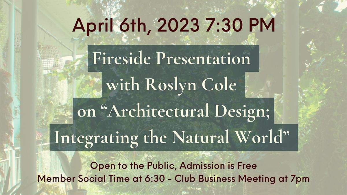 Members come early for social time at 6:30 p.m. and the Club business meeting at 7 p.m., followed by the Fireside presentation at 7:30 p.m. for what promises to be an engaging and insightful event.