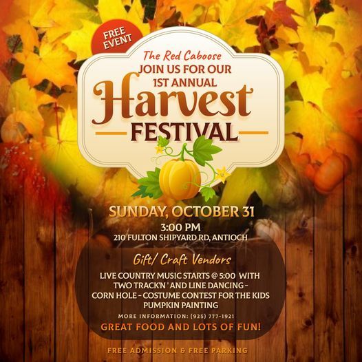 Harvest fun at the Caboose! Bring the family! Food, craft vendors, pumpkin painting (first 15 kids), Corn Hole, Ponies!As always, great food, lot's of fun and amazing music!!