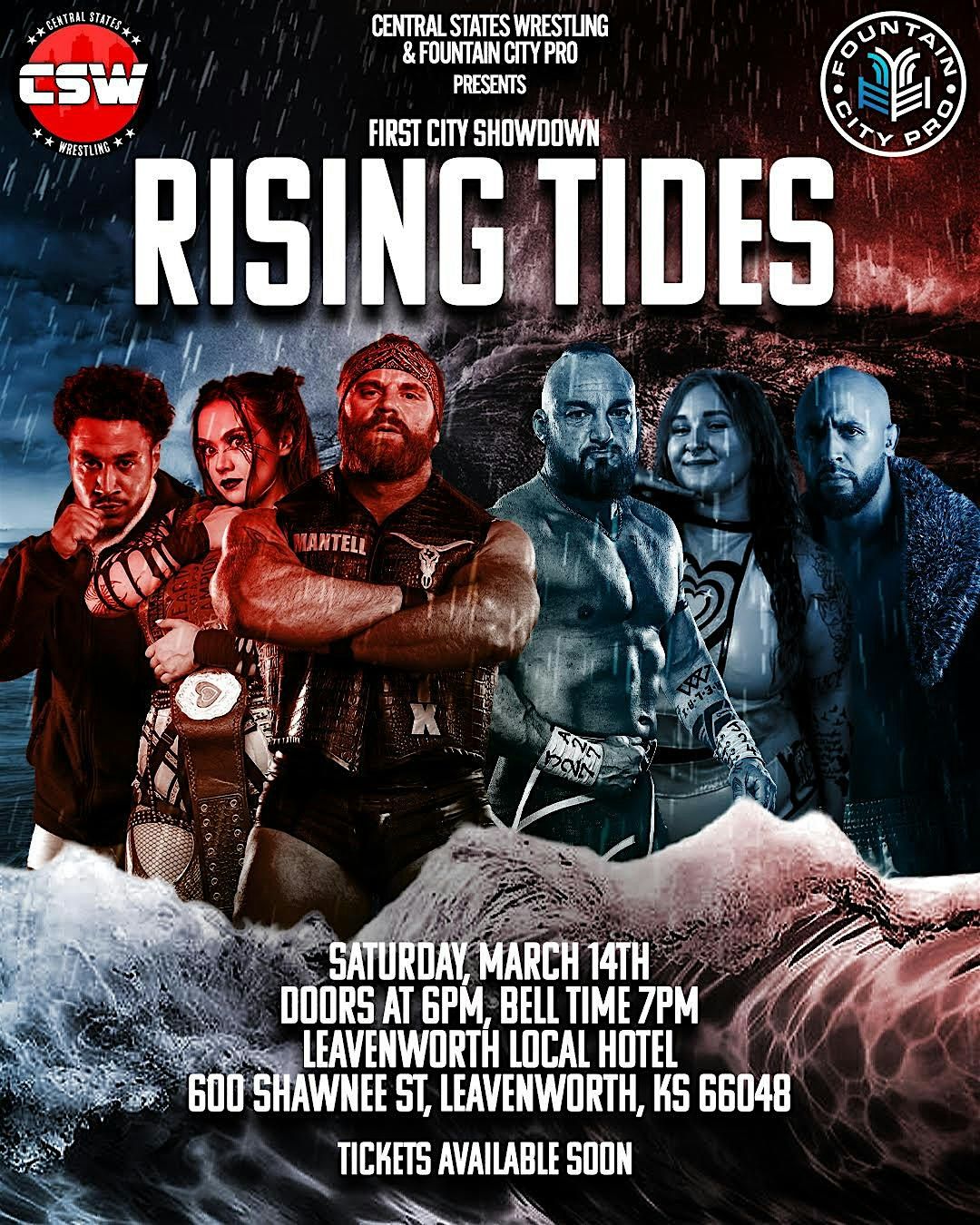 On Saturday, March 14th, Central States Wrestling teams up with Fountain City Pro for First City Showdown: Rising Tides — an unforgettable night of hard-hitting, high-impact professional wrestling action.