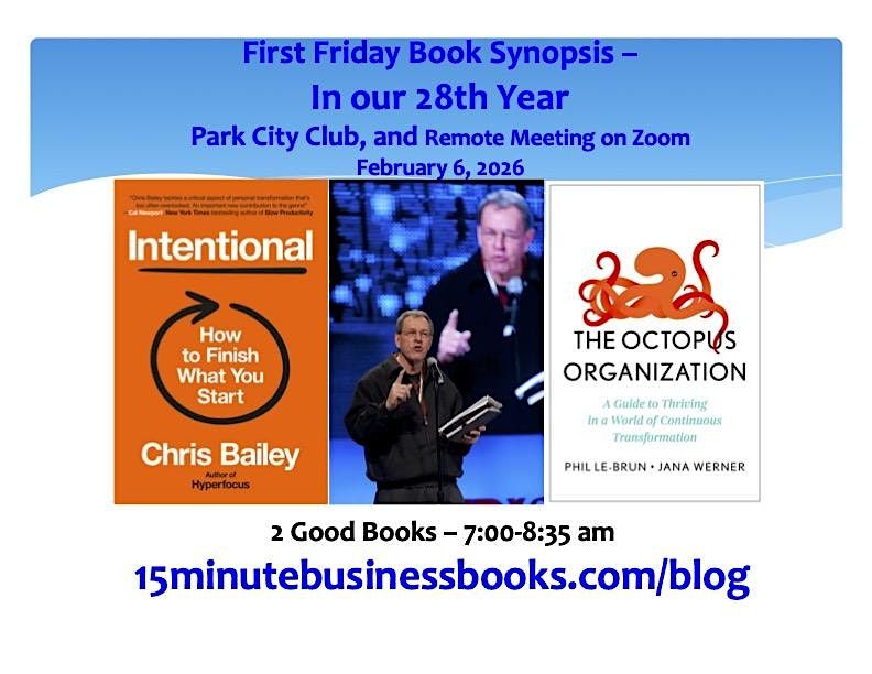 In our 28th year of the FIRST FRIDAY BOOK SYNOPSIS! -- Over 650 books presented!