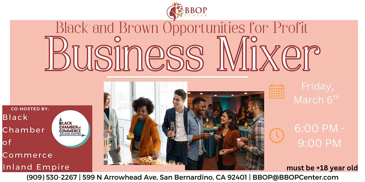 The BBOP Center and Black Chamber of Commerce Inland Empire are proud to co-host an evening designed to do exactly that. This Business Mixer brings together growth-minded entrepreneurs and established small businesses in a warm, community-driven environment where networking feels less like work and more like building something meaningful.