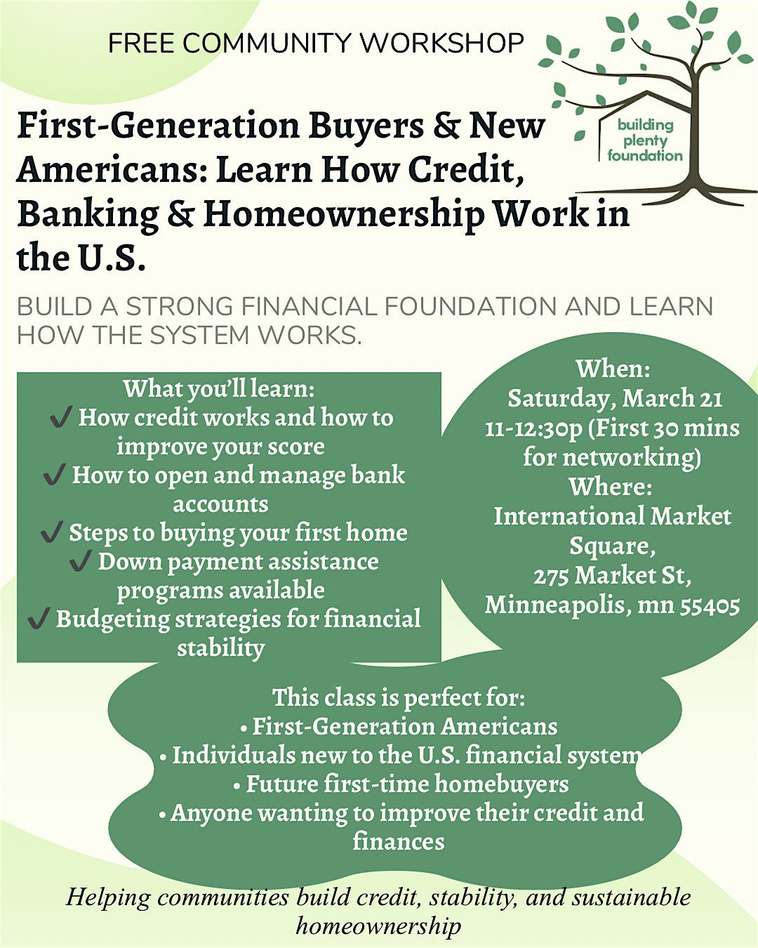 New Americans: Learn credit, banking, budgeting & down payment help in a 90-min class with Bill Strong. Build your path to homeownership!