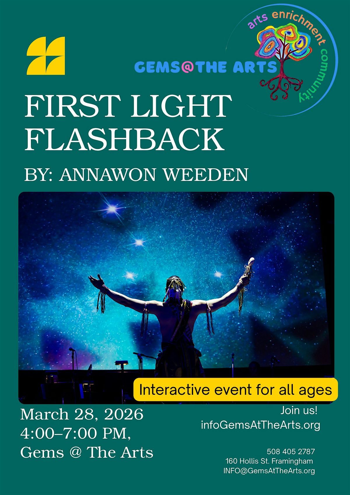 Prepare to be transported through time as Annawon Weedon performs his acclaimed one-man show, First Light Flashback. Annawon is a member of the Mashpee Wampanoag Tribe and traces his ancestry to the Pequot and Narragansett peoples, the original inhabitants of what we now call New England.