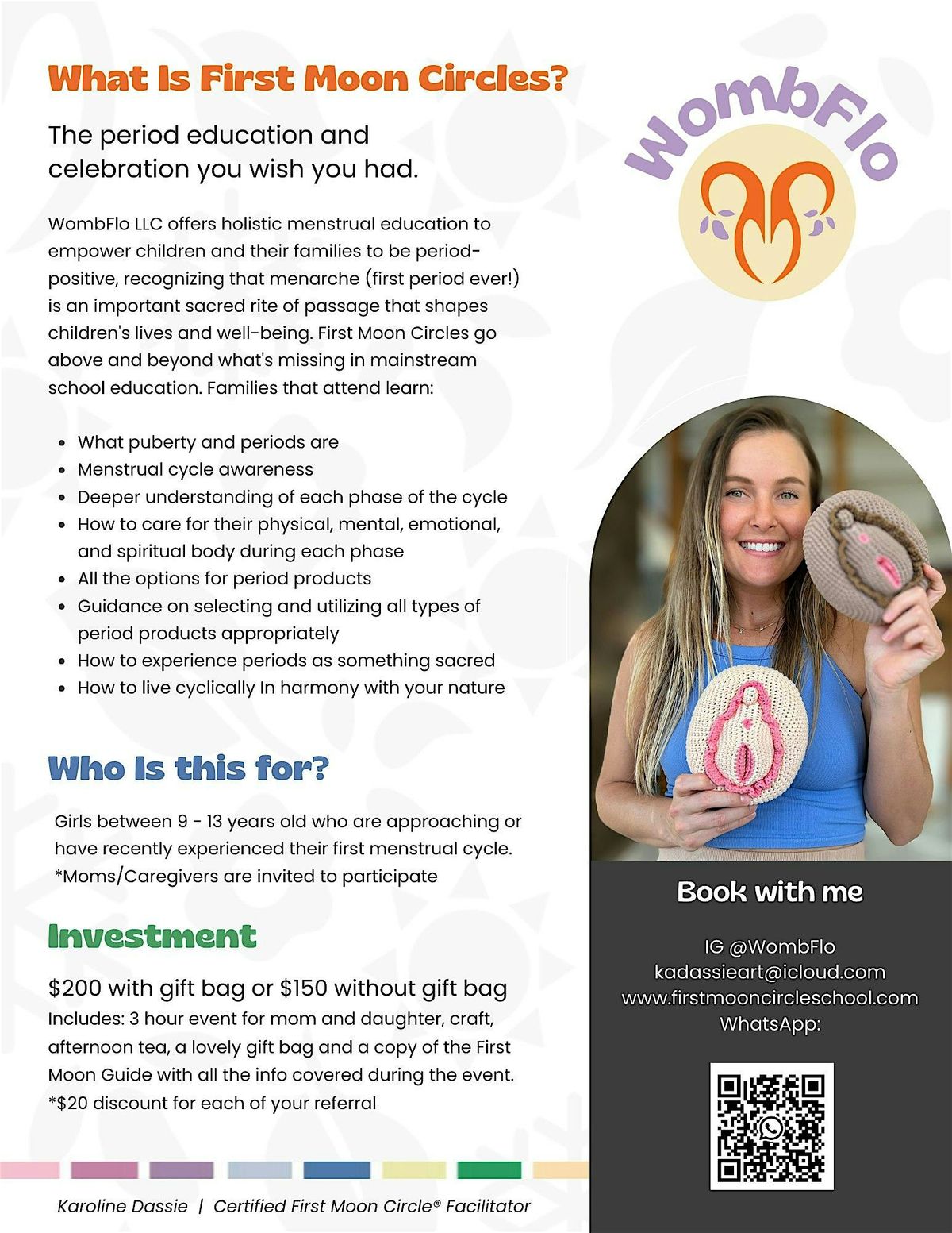 This includes 3hr event for mom and daughter, craft, afternoon tea, gift bag, a copy of first mooon guide with all the information that will be covered,