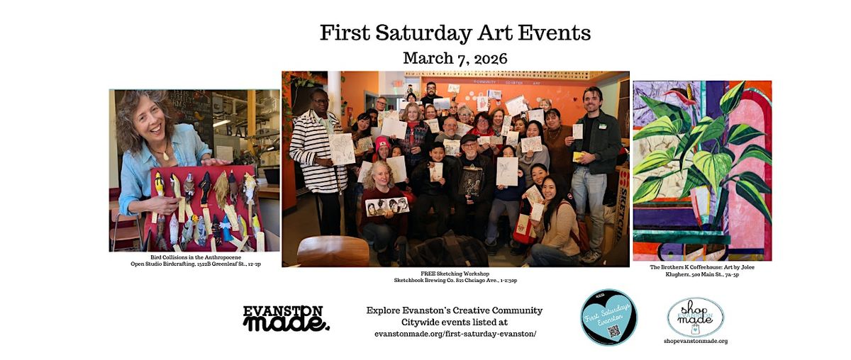 Evanston Made presents First Saturday Evanston Art Events. See art on display, shop for art and handmade goods, learn to sketch and make ART Friends!