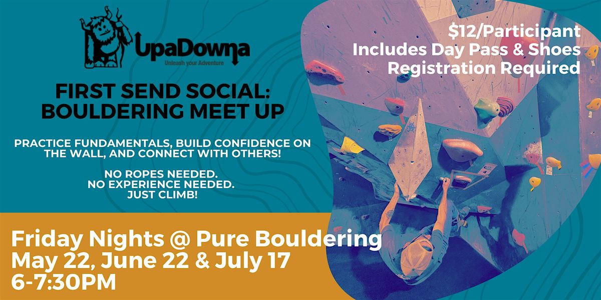 Event Details: Join UpaDowna for First Send Social, a fun and welcoming beginner bouldering meet up at Pure Bouldering! This 90-minute session is designed for adults who are newer to climbing and want to learn the basics in a relaxed, supportive environment. We’ll provide tips for foundational movement and technique —no ropes needed and no experience required. Just show up ready to try something new!