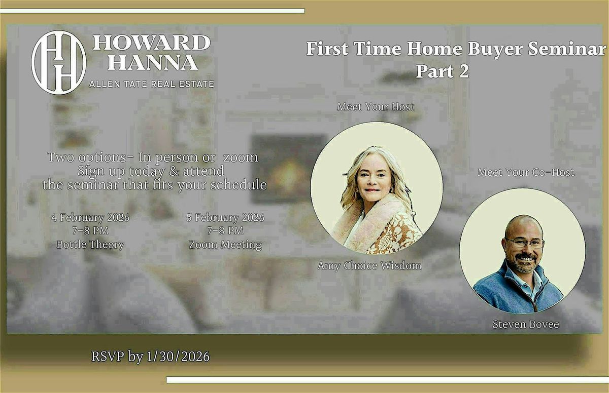 Welcome to the First Time Home Buyer Seminar: Part 2! 🏡 Join us on February 4, 2026 at 7:00 PM for an informative session tailored for those looking to purchase their first home. Our experts will cover key topics to help you navigate the home buying process with confidence. Whether you're looking to understand Due Diligence Fee, Earnest Money Deposit, Inspections, Appraisal or the importance of a Survey, this seminar is designed to equip you with valuable insights. Don't miss out on this opportunity to take the next step towards homeownership! See you there! (Eastern Time)