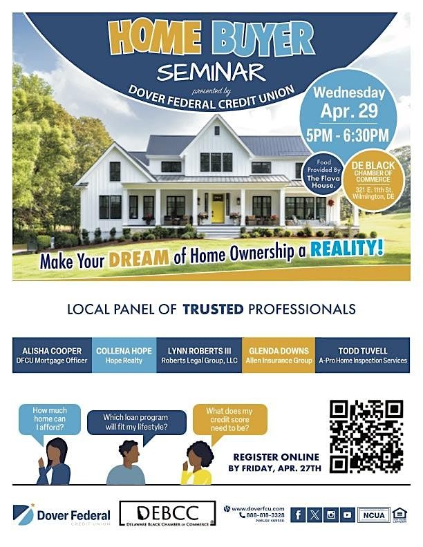 Join us for a First-Time Home Buyers (FTHB) Grant Info Session with Dover Federal Credit Union on Tuesday, February 24th from 4–5 PM at 321