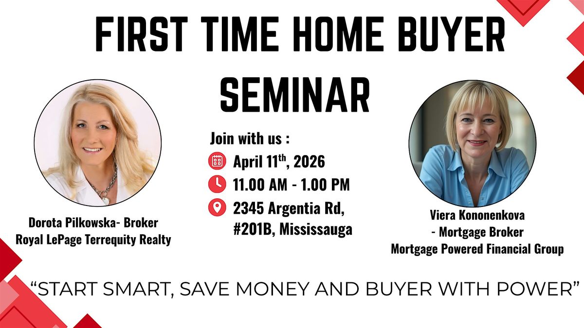 We’re hosting a FREE First-Time Home Buyer Seminar on April 11, 2026, in Mississauga, designed to give you the knowledge, confidence, and tools to make your first home purchase a success.