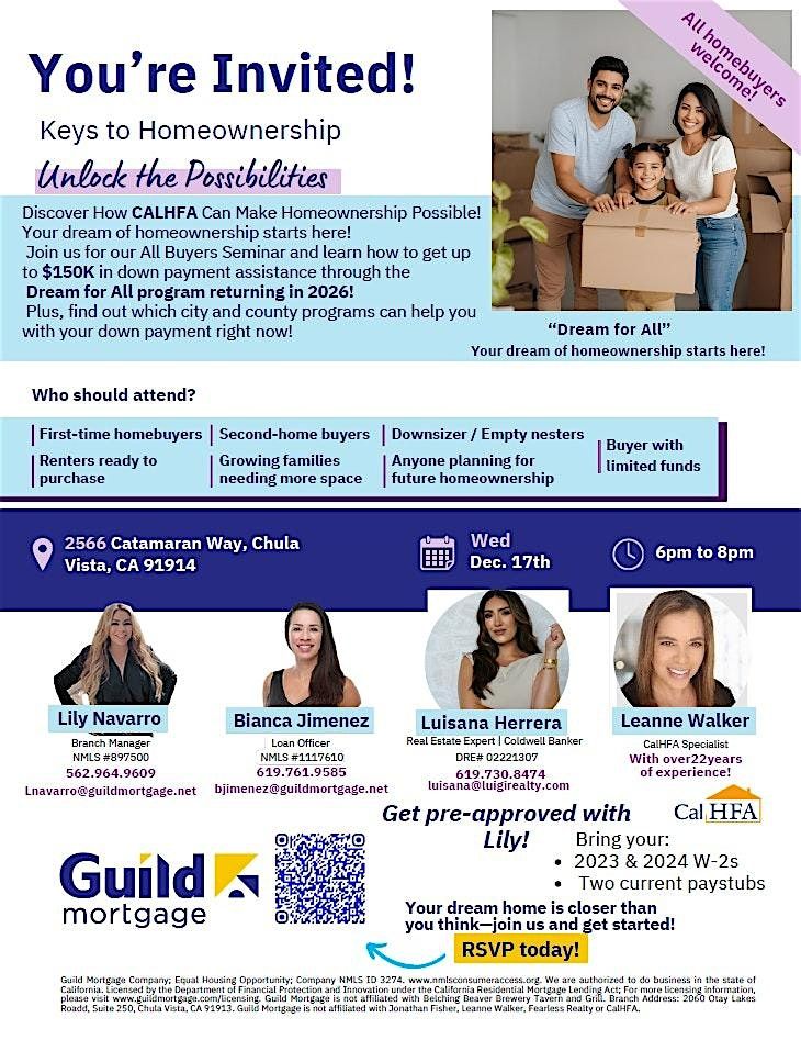 Presented by Lily Navarro & Bianca Jimenez, Guild Mortgage, Coldwell Banker & CalHFA