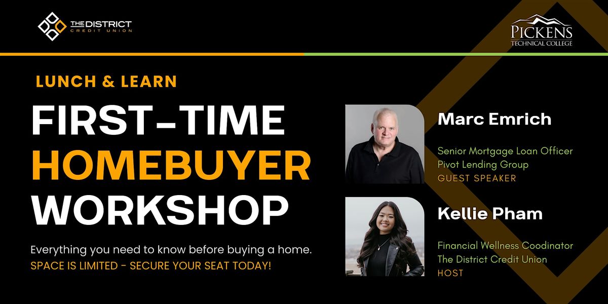 Join The District Credit Union for a relaxed Lunch & Learn workshop where we’ll walk through what first-time buyers need to know about today’s housing market, financing options, and how to prepare for homeownership.Our guest speaker, Marc Emrich from Pivot Lending Group, will share practical insights on market trends, financial preparation, and the programs available to help first-time buyers navigate the process with confidence.