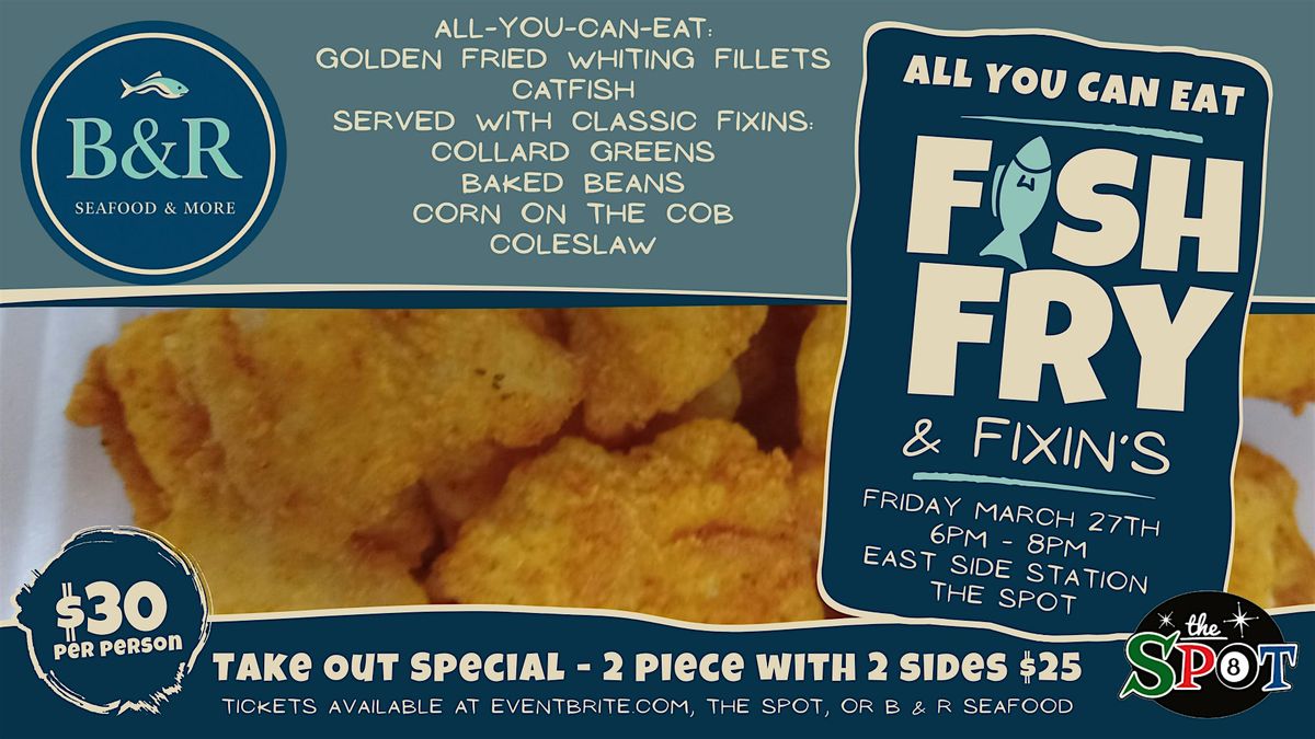 Join us Friday, March 27th for Fish Fry & Fixins at The Spot — featuring B & R Seafood & More.