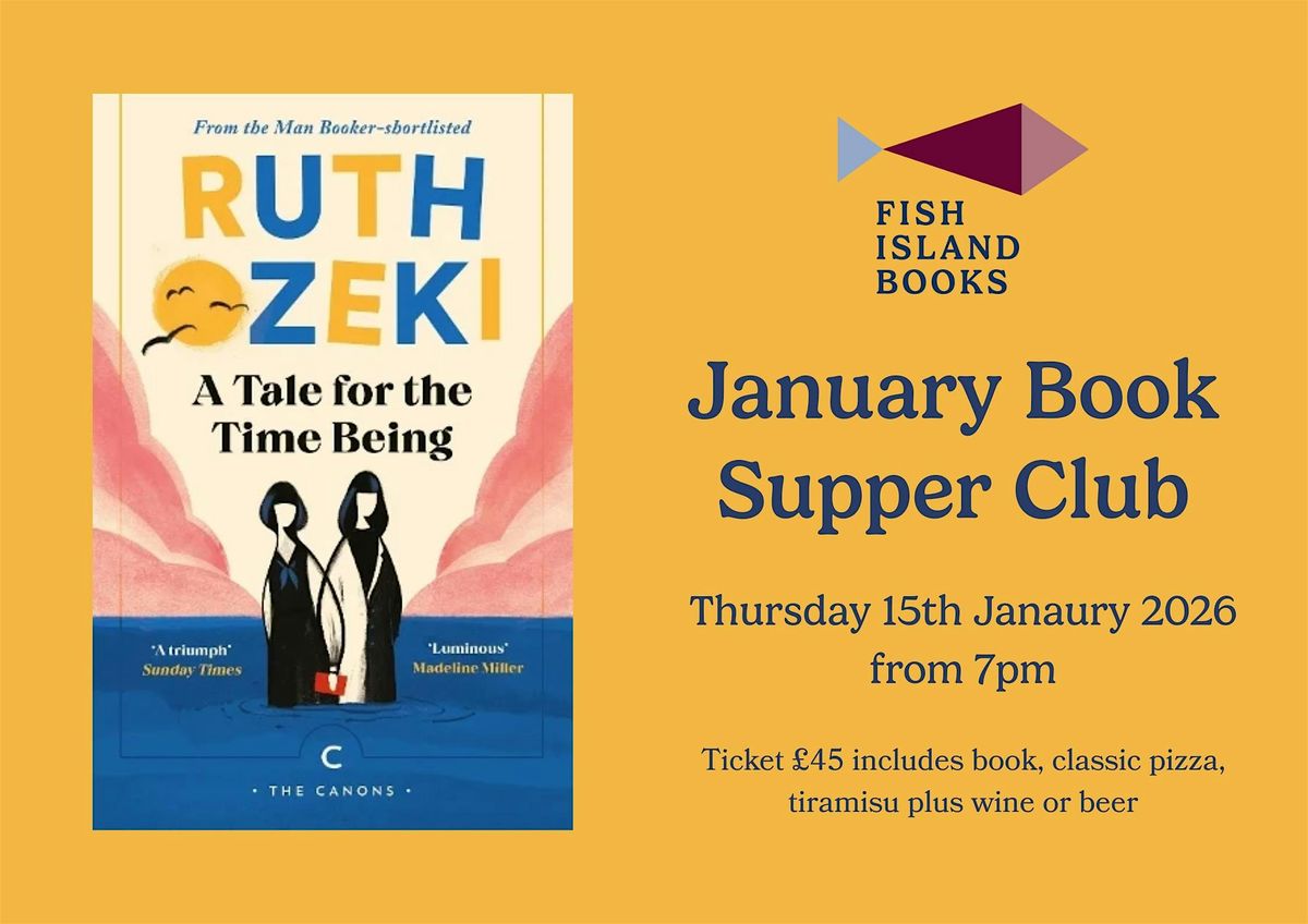 Get ready for a cozy evening at the Fish Island Book Supper Club January edition. Join us in UNLOCK to discuss A Tale for the Time Being over pizza and wine (we don't subscribe to dry January). Enjoy the book over the holidays and come ready to discuss it's weird and wonderful plot and characters.