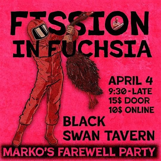 After 6 long years in the band, he’s finally had it. He’s hanging up his keys, wrapping up his vocal chords, and riding off into the sunset. But not before one last emotion-filled, alcohol-fueled, cathartic night of music and mayhem! Come help us celebrate Marko’s time with FiF, and maybe even catch a hint of what comes next. It’s gonna be all Fission in Fuchsia all night long, so come ready to laugh, cry, sing, dance, and drink away the sorrows!