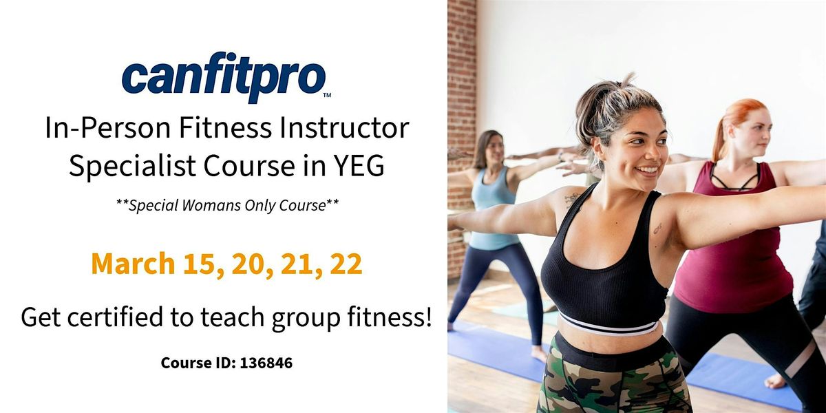 Start your journey to becoming a Group Fitness Instructor with this speclial Womens only canfitpro Fitness Instructor Specialist (FIS) Course hosted at HER GYMVMT Fitness Club - Whitemudin YEG on March 15,20,21,22!