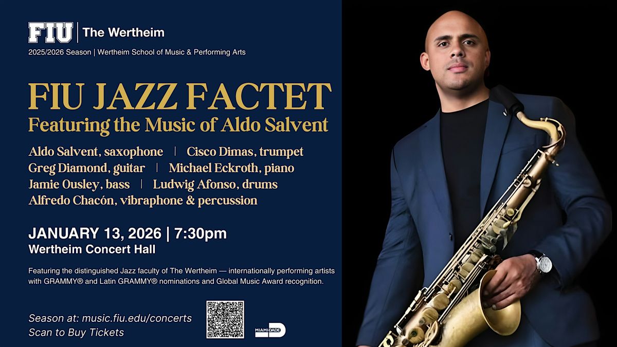 The FIU Jazz Factet is comprised of the distinguished jazz faculty of the Herbert and Nicole Wertheim School of Music & Performing Arts. Collectively, its members have earned multiple GRAMMY® and Latin GRAMMY® nominations, Fulbright Scholar and Specialist awards, and Global Music Awards, among many other honors. Active recording artists and internationally performing musicians, the ensemble continues to elevate FIU’s jazz profile on the world stage. Their recent recording, The FIU Jazz Factet Plays the Music of Gary Campbell, won a Global Music Award and is available on all major streaming platforms. This performance features the music of composer Aldo Salvent.