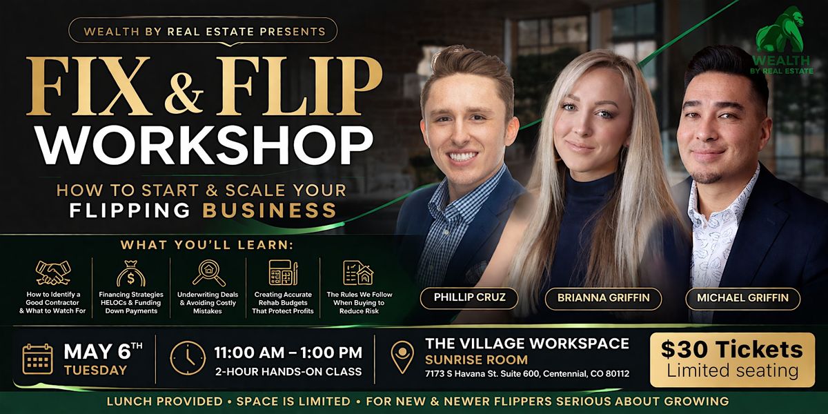 Join Wealth By Real Estate for a practical 2-hour workshop designed for flippers who want to start and scale their business the right way.